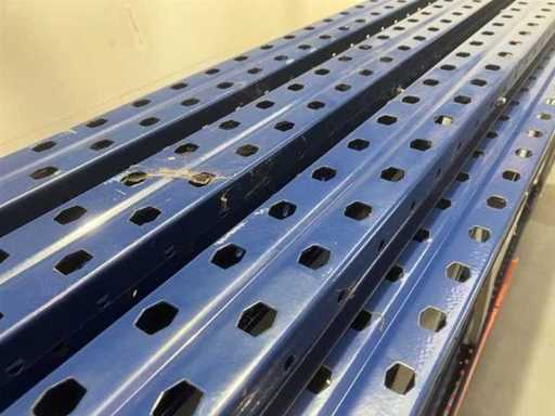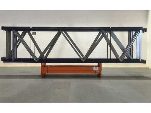 Rack à palettes Kimer (OCCASIE) Longueur : 9670 mm (5 modules de 1850 mm) Hauteur : 4500 mm (fourni avec 2 niveaux) Profondeur : 1100mm 6 échelles 4500 x 1100 20 poutres 1850 x 100
