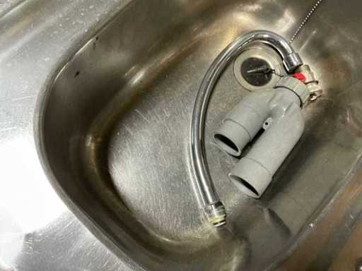 avec une cuisinière électrique à 2 brûleurs et un évier