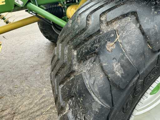 Équipé de : Le Krone Swadro 1400 Plus Sw2e (FIN WMKKS402C01018059, année de construction 2019) est un râteau rotatif à quatre rotors d’une largeur de travail d’environ 13,5 mètres, d’un poids total autorisé de 6 300 kg, d’une charge par essieu arrière de 5 100 kg, d’une charge de support avant de 1 200 kg, des dimensions de transport d’environ 8,8 × 3,0 × 4,0 m et d’une transmission PTO requise de 540 tr/min. Nombre de rotors : 4 ,