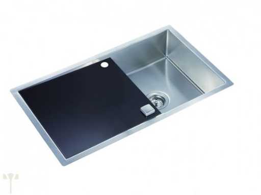 Évier ; acier inoxydable/verre noir ; 86 cm