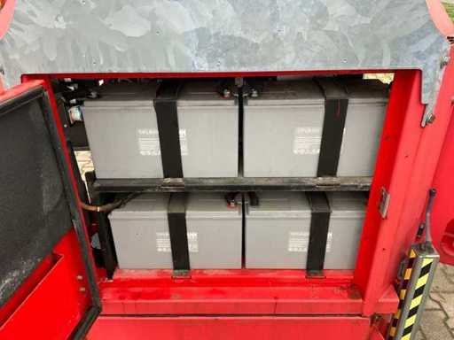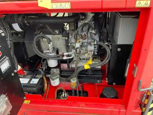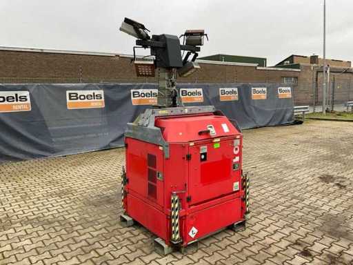 mât télescopique hydraulique ; hauteur maximale du mât de 8,5 mètres ; moteur diesel Kubota ; capteur de lumière ; minuteur ; 4 lampes LED de 120 watts ; 4143 heures de lecture ; 4 pieds extensibles à balancier ; connexion 230 volts ; fentes pour fourches élévateurs ; conditions de travail ;