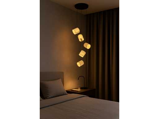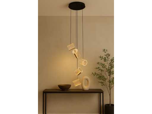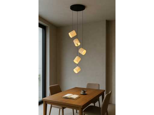 Lumière suspendue LED modèle B068/5 – Température de couleur 3000K (blanc chaud) – Diamètre : 350 mm – Hauteur réglable – Source lumineuse Euse : bande LED intégrée – Tension : 220-240V (50/60 Hz) – Kit de montage inclus – Adapté à l’intérieur : salons, chambres, bureaux ou espaces de vie – Garantie de 3 ans.