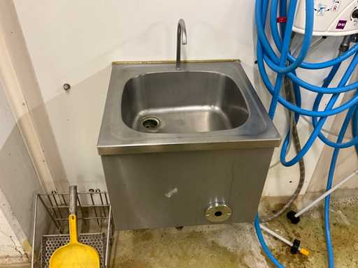 Lave-mains en acier inoxydable avec plm dim: 46x46x60cm, complet avec mélangeur GROHE, distributeur de savon et de papier et système de pulvérisation RX DIVERSEY J2000, pour démonter le mur mural, situé dans la pièce 100