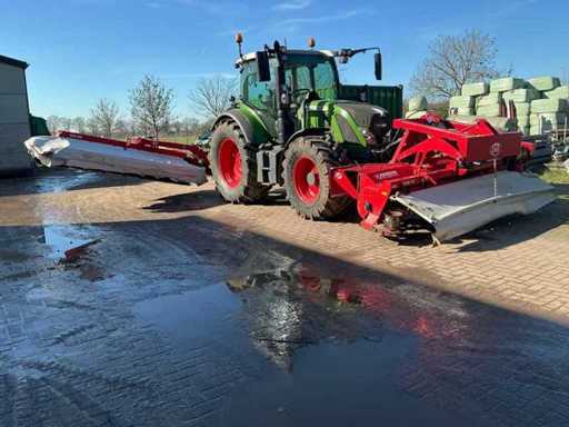 Équipé de : une tondeuse Lely Splendimo combinée comprenant une tondeuse avant 320 FC (année 2014, numéro de série 0003193487-2014, type 4.1255.0080.1, poids 1055 kg, largeur de travail 3,20 m, 8 disques de coupe avec conditionneur à hélice) et une tondeuse arrière/tondeuse latérale de 3,20 m (année 2015, numéro de série 0003197540-2014, type 4.1299.0001.1, poids 1064 kg, 8 disques de coupe) d’une largeur totale d’environ 6,40 mètres et un total de 16 disques de coupe (32 lames).