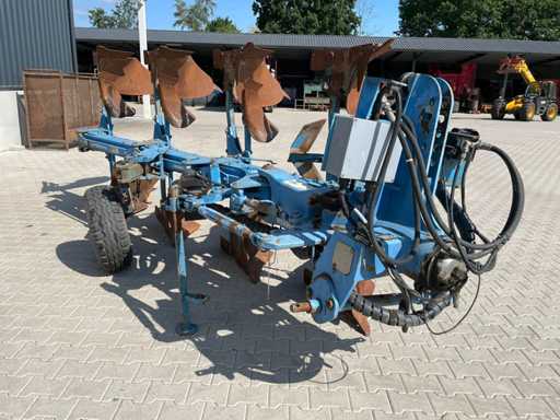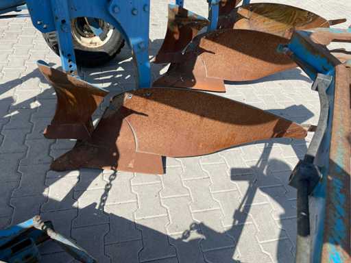 Équipé de : type de charrue réversible, vari-Europal 8, version : 4 N 100, roue motrice, roue de profondeur, cisaillements avant, bras de ravitaillement de sillons, vario, commande isobus, kW/HP 118/160, distance cisaillement-cisaillement 90/100.