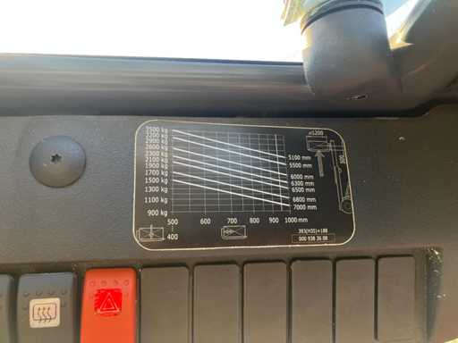 Equipé d’un rotateur de la marque Kaup, type 441-R-11H – capacité maximale 3500 kg à un centre de charge de 500 mm.