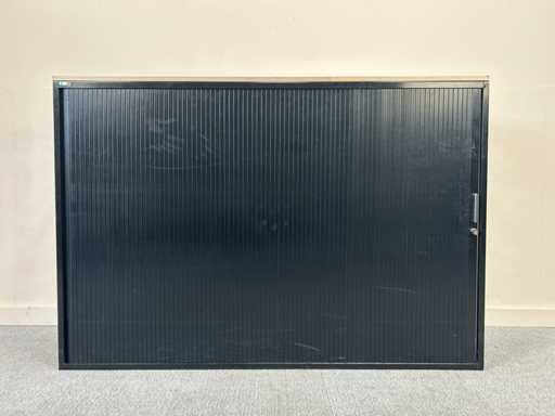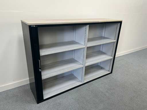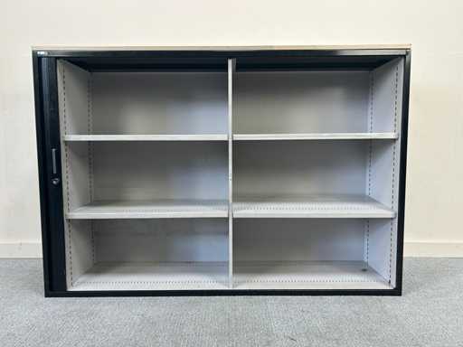 Classeur noir, avec porte coulissante, 2 x 2 étagères, avec signes d’utilisation, clé non garantie