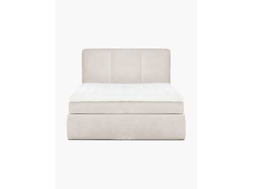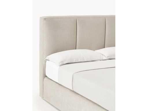 Surface du couchage : larg. 160 cm, long. 200 cm Dimensions globales : larg. 160 cm, long. 210 cm Tête de lit : larg. 160 cm, prof. 12 cm, haut. 123 cm Couchage : haut. 55 cm Surmatelas : haut. 3 cm Matelas sans surmatelas : haut. 17 cm Pieds : haut. 3 cm Charge maximale : 300 kg (150 kg par côté) - Niveau 3 : sensation de couchage moyenne à ferme, recommandé pour un poids corporel à partir de 80 kg Fabriqué en Europe Couleur Beige clair Matière Revêtement : 100% polyester