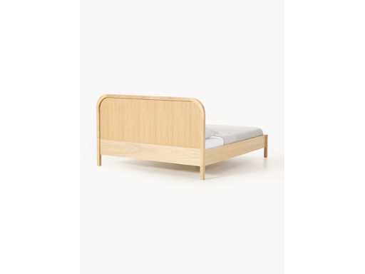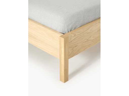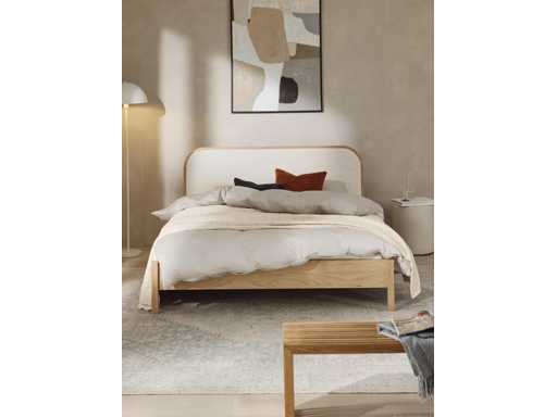Couleur Cadre : bois clair Tête de lit : blanc cassé Matière Revêtement de la tête de lit : bouclé (80 % polyester, 20 % polyacrylique) Le tissu atteint un excellent score de 100 000 cycles au test d’abrasion Martindale, garantissant une durabilité longue durée même en usage intensif. Cadre : bois de chêne et de bouleau, panneaux de particules avec placage chêne Structure intérieure : bois de pin Pieds : bois de chêne Surface de couchage : larg. 160 cm, long. 200 cm Dimensions globales : larg. 170 cm, long. 210 cm Tête de lit : larg. 170 cm, haut. 3 cm, prof. 100 cm Profondeur d'insertion pour sommier à lattes : 13 cm Pieds : haut. 17 cm Capacité de charge totale : max. 300 kg (150 kg par côté)