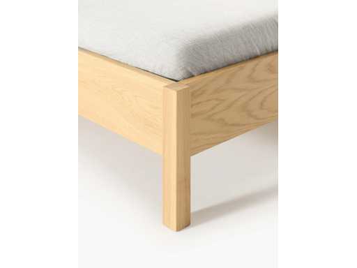 Couleur Cadre : bois clair Tête de lit : beige Matière Cadre : bois de chêne et de pin, panneau de particules plaqué chêne Tête de lit : bois de chêne, rotin Pieds : bois de chêne Ce produit est fabriqué à partir de bois certifié FSC® issu d'une exploitation durable Surface de couchage : larg. 160 cm, long. 200 cm Dimensions globales : larg. 170 cm, long. 210 cm Tête de lit : larg. 170 cm, haut. 3 cm, prof. 100 cm Profondeur d'insertion pour sommier à lattes : 13 cm Pieds : haut. 17 cm Capacité de charge totale : max. 300 kg (150 kg par côté)