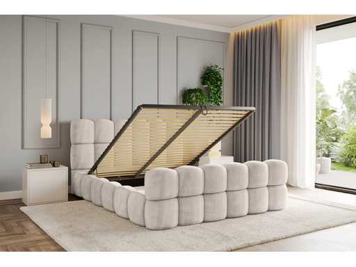 Lit 180x200 avec espace de rangement - velours beige