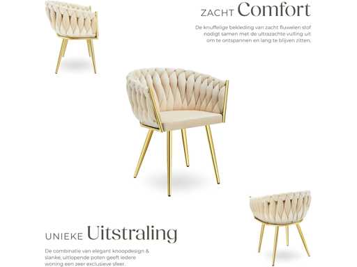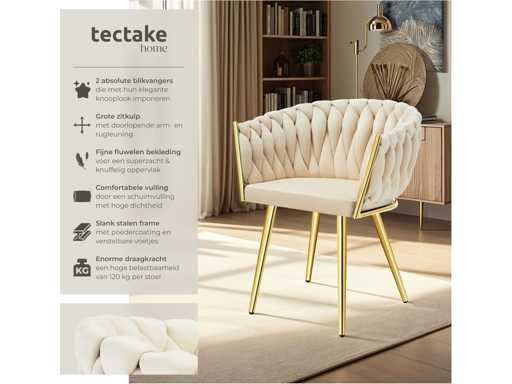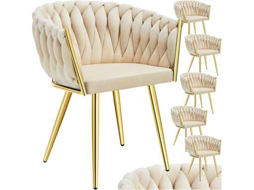 Lot de 2 chaises de salle à manger en velours avec accoudoirs aspect nœud - sable-doré