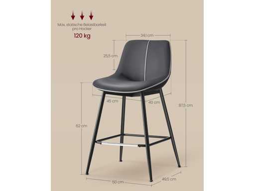 Max. Statische Belastbarkeit pro Hocker: 120 kg