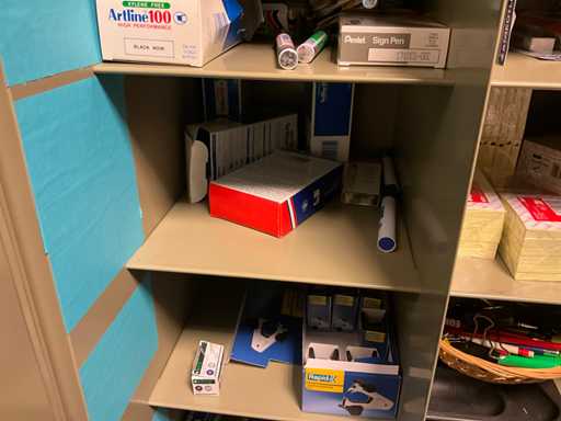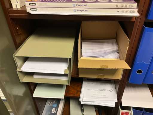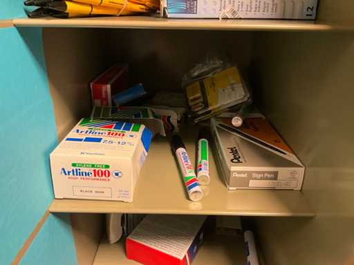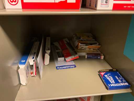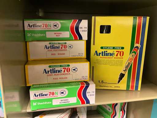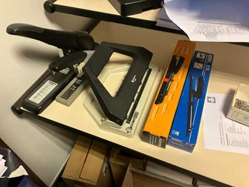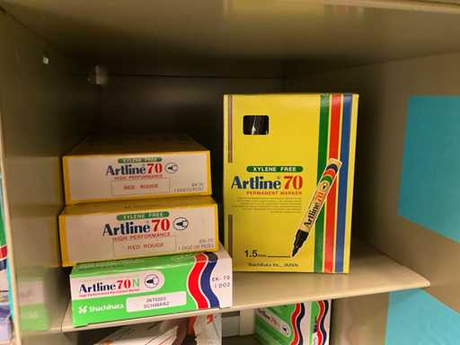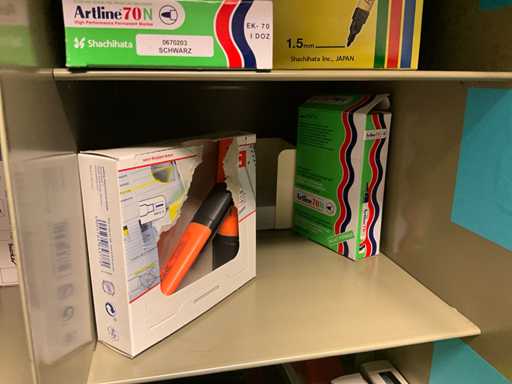 y compris ARTLINE, STABILO, BIC, TRODAF, LEITZ, BRUNEAU, LEITZ y compris divers marqueurs de différentes couleurs, divers stylos à bille, divers stylos fluorescents, tampons, divers crayons, marqueurs, agrafeuses, diverses perforatrices, divers relieurs à anneaux, agrafes, carnets de commandes, rouleaux d’étiquettes, relieurs en PVC, diverses limes suspendues, papier laminé