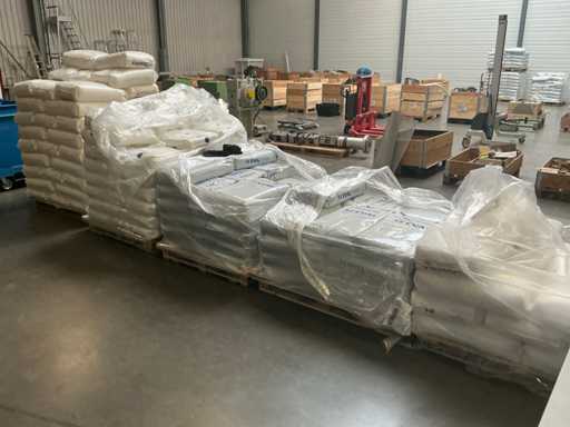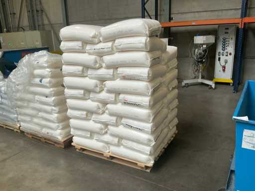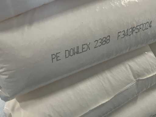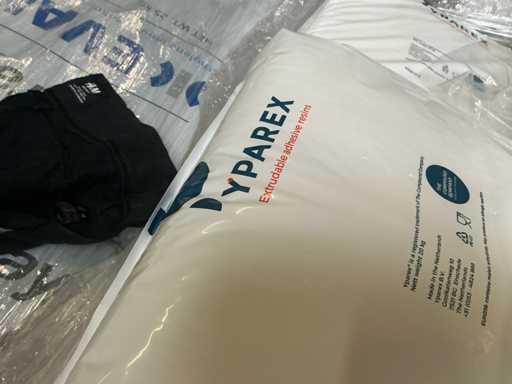 soit 47 sacs d’éthylène Kuraray Eval de 25 kg, 65 sacs de 25 kg de Dowlex 2388 PE, 35 sacs de résines Yparex de 20 kg