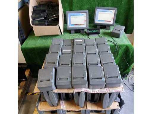 Lot de systèmes de point de vente (POS) POSLIGNE comprenant une trentaine de terminaux tactile, une vingtaine d’imprimantes thermique et afficheurs client.