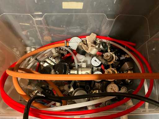 Complet avec têtes de robinetterie, tuyaux et accessoires.