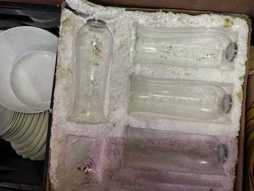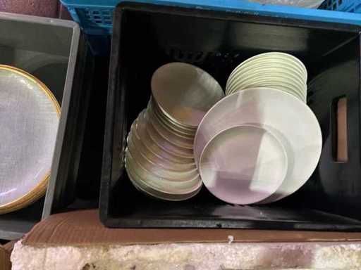 Vaisselles : assiettes, verres, couverts, tasse, sous assiettes, vase