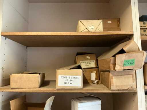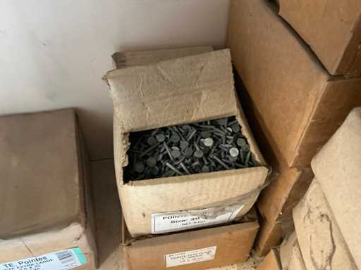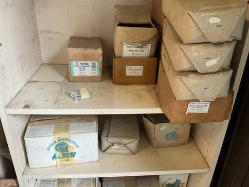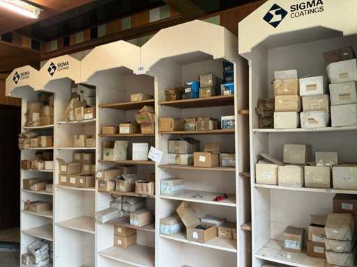 Armoire murale signée SIGMA COATINGS, avec un lot de fixations variées, y compris TE. POINTES, TREFILEUROPE, y compris des clous, des embouts en PVC en silicone, etc., en différentes tailles