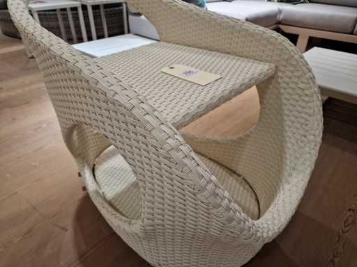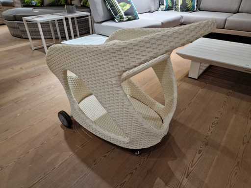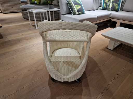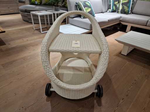 Luxury Lounge Wicker Trolley Alabama Blanc 91 x 55 x H67cm - Cadre en aluminium - Cravate blanche HDPE