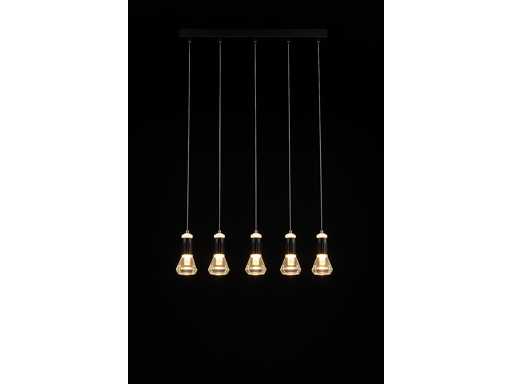 Modèle de lumière suspendue LED B029/5 – Température de couleur 3000K (blanc chaud) – Largeur : 600 mm – HauteurRéglable – Source lumineuse : bande LED intégrée – Tension : 220-240V (50/60 Hz) – Kit de montage inclus – Éclairage intérieur élégant, parfait pour les salons, salles à manger ou espaces modernes – Garantie de 3 ans.