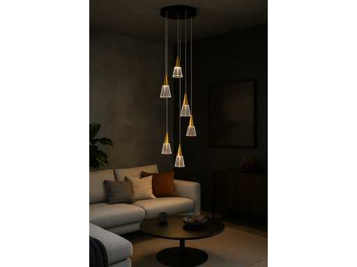 Suspension LED modèle B073/6 – Température de couleur 3000K (blanc chaud) – Diamètre : 350 mm – Hauteur réglable – Source lumineuse : bande LED intégrée – Tension : 220-240V (50/60 Hz) – Kit de montage inclus – Éclairage intérieur idéal pour salons, salles à manger, chambres ou bureaux – Garantie de 3 ans.