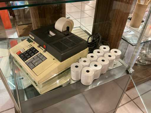 Comprenant la machine à écrire OLIVETTI ET PERSONAL et la caisse enregistreuse OLYMPIA avec rouleau, avec un kit de nettoyage, une armoire à clés suspendue et une alimentation électrique, ainsi que des accessoires pour machine à écrire et machine à compter, sans vitrine