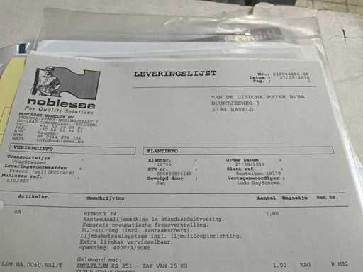 Signé Noblesse Benelux (avec contrat de maintenance), version standard, avec réglage pneumatique séparé du fraisage.