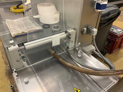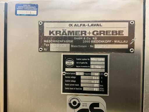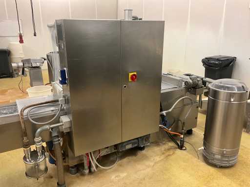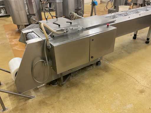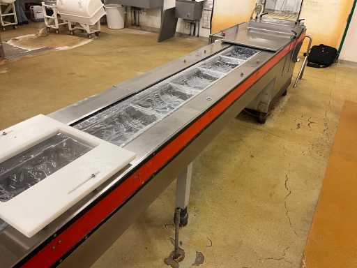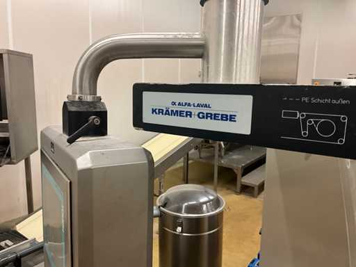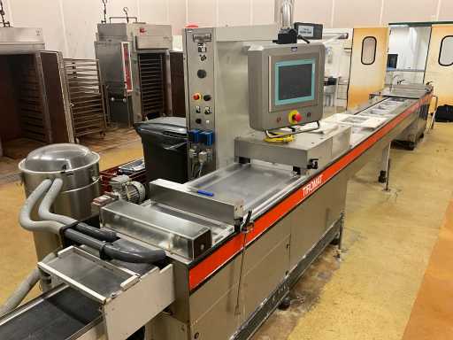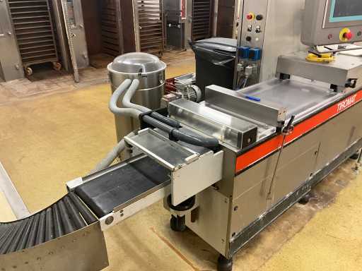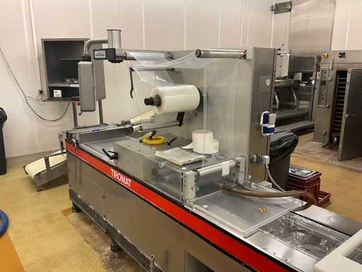 Machine d’emballage thermoformage KRAMER+GREBE get. TIROMAT by ALFA LAVAL complet avec courroie de vidange en acier inoxydable avec télécommande PLM: 460x90x150cm (réglable) en démontant vous-même le cuivre jusqu’à la ceinture BIZERBA, situé dans la salle 98