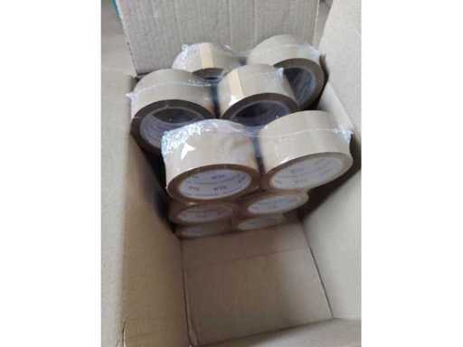 Environ 50 rouleaux de ruban adhésif (18 bruns - 18 imprimés avec des données de la boutique en ligne) et 6 rouleaux de ruban utilisés.