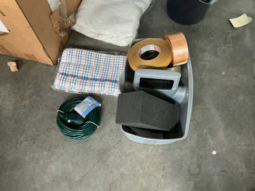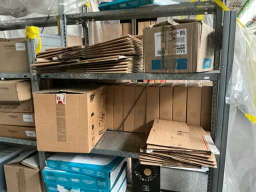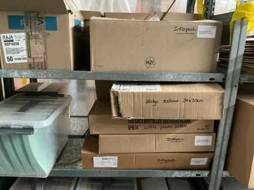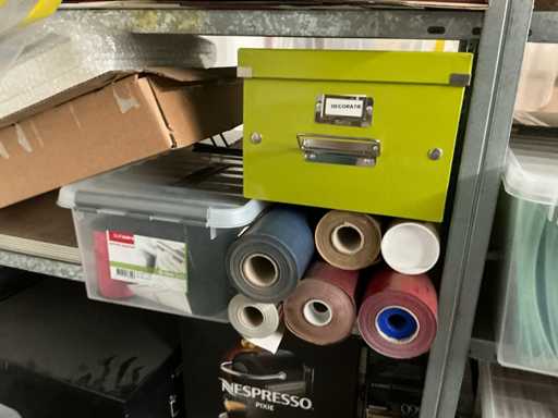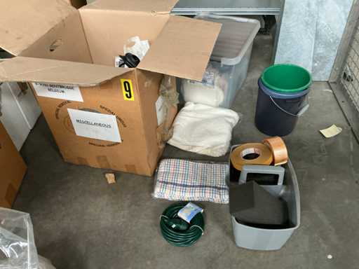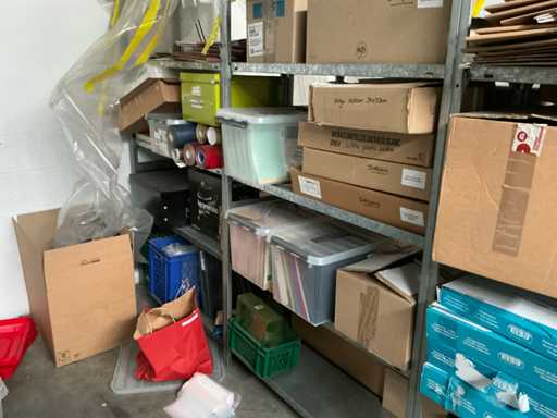 Il s’agit notamment de : boîtes en carton, sacs à fermeture éclair, sacs à fermeture éclair, sacs de retour, enevloppen rembourrés, env. 6 boîtes de rangement en carton LEITZ, divers bacs de rangement en PVC, divers accessoires de bureau dont des dossiers, des dossiers suspendus, des rouleaux de film d’emballage, quelques vases, des porte-documents, des tubes en carton, des décorations diverses, TV SONY. tous dans divers formats, délivrés conformément aux instructions, à l’exception des lots numérotés et de la comptabilité/documentation