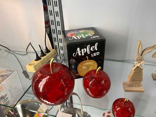 Comprenant diverses statues, divers cadres photo, une série de pommes avec éclairage LED, décorations de Noël, albums photos, bougies théâtrales.....