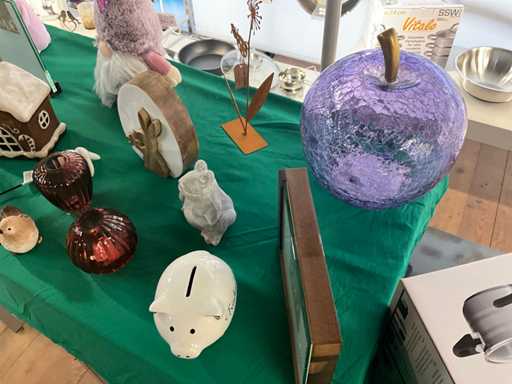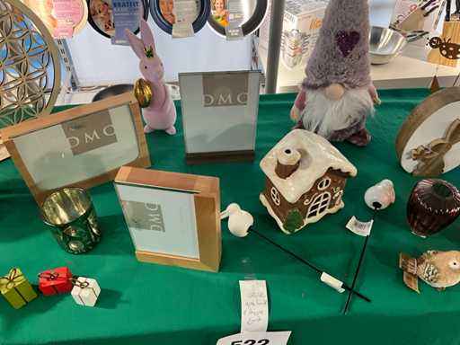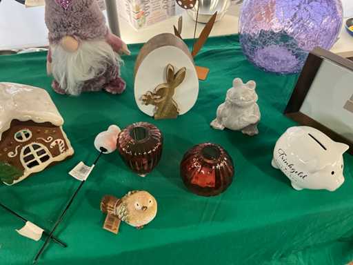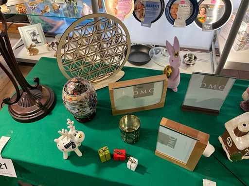 Comprenant diverses statues, divers cadres photo, décorations de Noël, œuf chinois sur piédestal, pomme avec éclairage LED....
