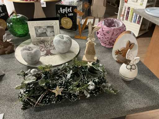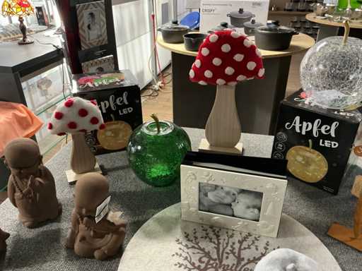 Y compris des décorations de Noël, des lumières LED, une pomme, des bouddhas, un pot de lapin, des figurines, un album photo,..