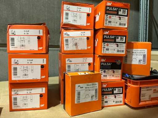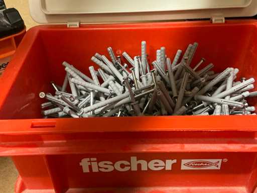 Y compris des clous de bord, des vis avec bouchon et serre-joints, Étendu dans 13 cartons et 2 contenants de stockage en plastique, Avec plusieurs connecteurs dans une boîte de stockage en PVC