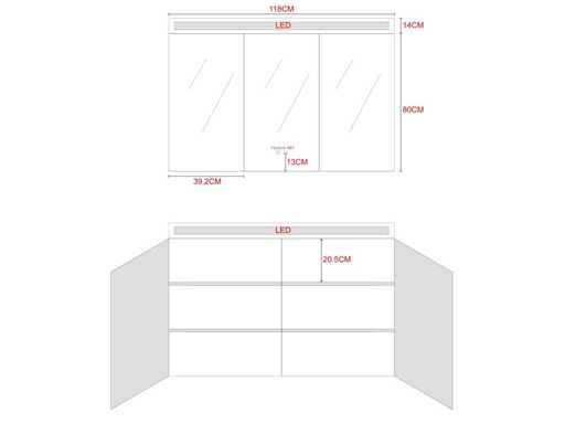 - Armoire de toilette avec éclairage et chauffage LED (anti/buée) avec commande tactile 2x