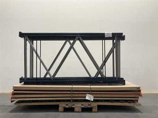 Étagère à palettes Mecalux (OCCASIE) Longueur : 8420 mm (3 modules de 2 700 mm) Hauteur : 2300 mm (fourni avec 3 niveaux) Profondeur : 1100mm 4 échelles 2300 x 1100 18 poutres 2700 x 80 27 faisceaux de profondeur 1100 + Fibreboards