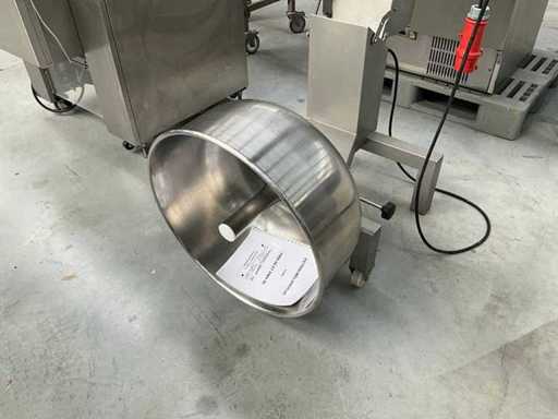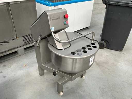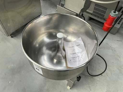 Équipé d’une cuve de mélange basculante, d’un mélangeur à trois bras, d’un système mobile