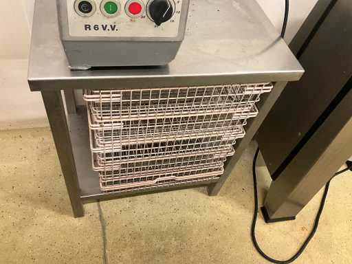 Mélangeur ROBOTCOUPE R6 V.V. complet avec table en acier inoxydable avec dim plm:70x50x82 cm VV 5 paniers de rangement