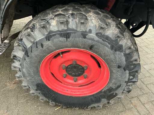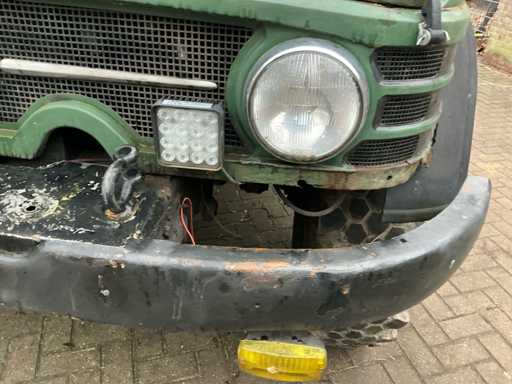 Équipé de : barre de remorquage, barre de traction, feu de travail, klaxon d’air, boîte à chargement avec panneaux latéraux, barre de remorquage à l’avant,