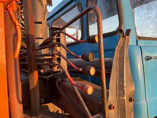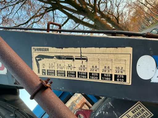 Équipé de : balanciers, grue HIAB 650A (modulaire extensible en deux parties), plateforme de chargement, balise, accouplement à mâchoire, contrôle double de décrochage des deux côtés