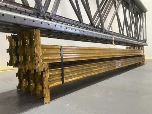 Étagère à palettes unipal Metalsistem (OCCASIE) Longueur : 11250 mm (4 modules de 2700 mm) Hauteur : 4000 mm (équipé de 2 niveaux) Profondeur : 900 mm 5 échelles 4000 x 900 16 poutres 2700 x 105