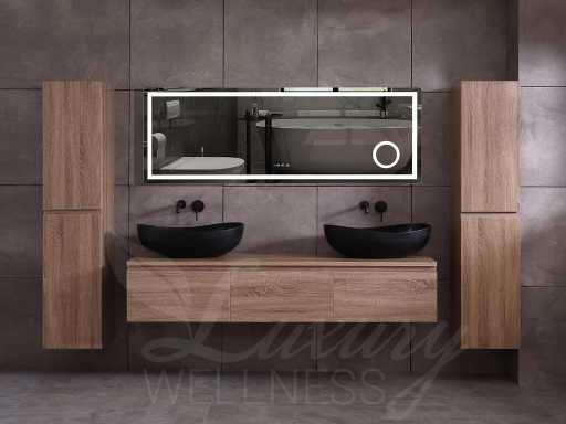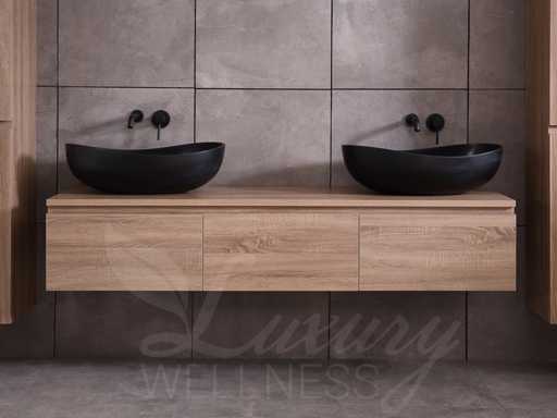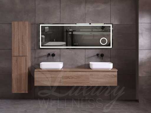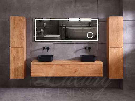 Meuble de salle de bain en chêne 2 personnes 180cm (4 couleurs possibles) avec (armoire suspendue) et miroir LED