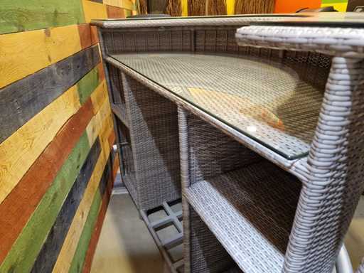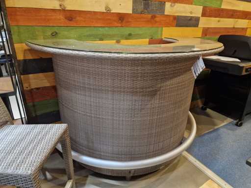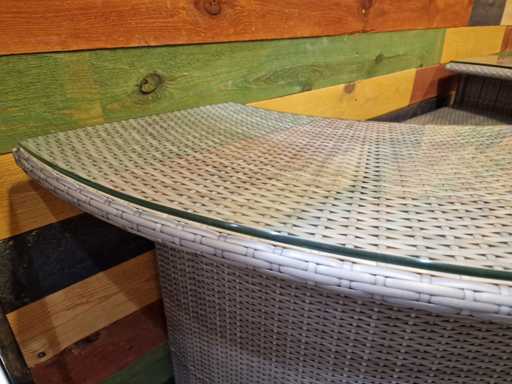 Meubles lounge bar de luxe Moon 180 x 90 x H118cm Attache Akoya HDPE Osier - Cadre en aluminium avec repose-pieds et verre trempé - finition luxe en qualité supérieure