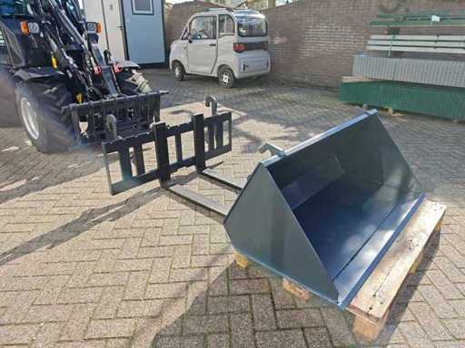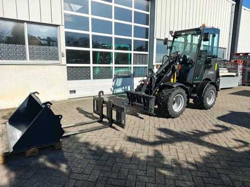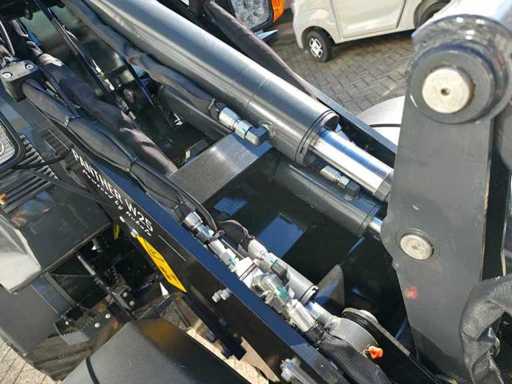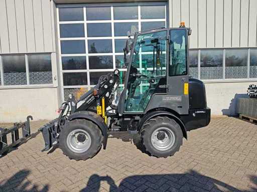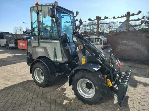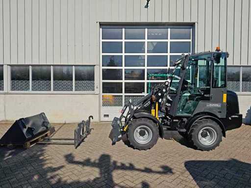 Miniloader équipé d’un moteur diesel Kubota V1505 4 cylindres EURO5, refroidi par eau, 18,4 kWW, capacité 1 498 litres, version avancée ; Hydraulique équipée d’une pompe à piston Rexroth et d’un moteur Rexroth Travel, levier de commande électronique avec fonctionnement doux et fonctionnement simultané de plusieurs fonctions, moteur Travel avec 2 vitesses également activables sur levier de transmission, feux de travail LED avant et arrière, siège Toyota réglable et suspendu avec capteur électronique (moteur coupé après 20 secondes), accouplements rapides hydrauliques pour l’installation des pièces (connexion euro), habitacle avec chauffage et radio, Éclairage LED de travail.