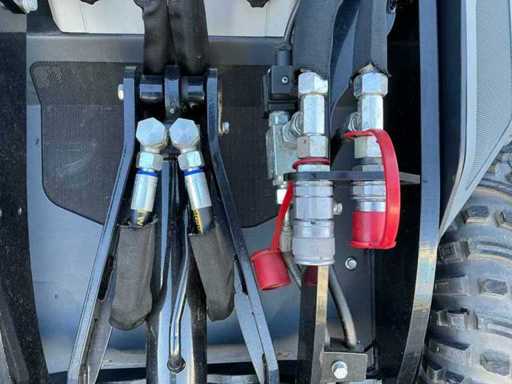 Équipé de : attelage rapide hydraulique, connexion hydraulique, éclairage de travail, panneau de contrôle, protection de conduite, godet