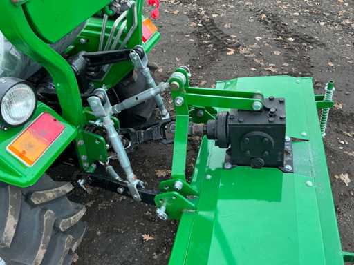 2RM, 2 vitesses de course, 3 vitesses + marche arrière, PTO 540/720 tr/min, 1xsoupape DW, relevage, PTO, fraiseuse 1100mm, support pliable, lampe de travail, boîte à outils