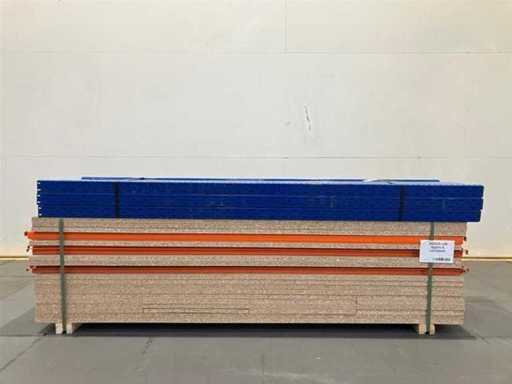 Porte-bagages Ministow à grande portée (OCCASIE) Longueur : 8250 mm (4 modules de 2000 mm) Hauteur : 2000 mm (fourni avec 4 niveaux) Profondeur : 500 mm 5 échelles 2000 x 500, fermées 32 poutres 2000 x 70 + Panneau de fibres