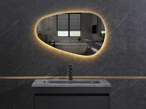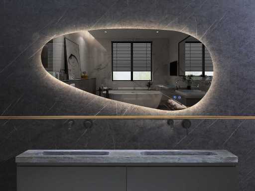 Dimensions lxh 80x50cm ou 90x60cm ou 100x60cm ou 110x60cm ou 120x60cm ou 120x75cm ou 130x65cm ou 140x65cm ou 150x70cm ou 160x70cm, vous avez le choix de 1 de ces dimensions et aussi la possibilité dans le modèle en miroir beed), veuillez envoyer votre choix par e-mail sur info@mawialux.nl immédiatement après la clôture de l’enchère), miroir led avec chauffage, Type design+, Chauffage Oui, Fonctionnement 2x commande tactile à une touche, Éclairage 3 couleurs réglables led 3000/4500/6000K diodes led (dimmable) (lumière jaune/bleue/blanche), Équipé de 4 points de suspension intégrés, prise 220volt (plug and play), chauffage pour éviter la condensation, 1,5 mm sans cuivre avec couche antidéflagrante avec la même fonction que le verre trempé, État : Nouveau dans la boîte, Caractéristiques spéciales, il y a 4 points de suspension derrière le miroir pour que vous puissiez accrocher le miroir à la fois horizontalement et verticalement (convient à la fois à un meuble de 140 cm et à un meuble de 60-70 cm de large et à divers autres meubles pour 1 ou 2 personnes), garantie de 2 ans, miroir de haute qualité et très exclusif (REMARQUE : certaines dimensions peuvent être en rupture de stock pendant un certain temps, de sorte que la livraison est légèrement en dehors de la période de livraison de 2 semaines)