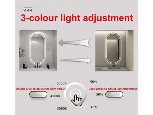 ? Conception de sécurité : le miroir est traité avec un film antidéflagrant for garantir qu'en cas d'impact accidentel, les débris n'éclabousseront pas. Les bords lisses ne feront pas mal à vos mains, beaux et sûrs. Dispose d'une bande lumineuse étanche IP44 for garantir une utilisation sûre dans les environnements de salle de bain humides.